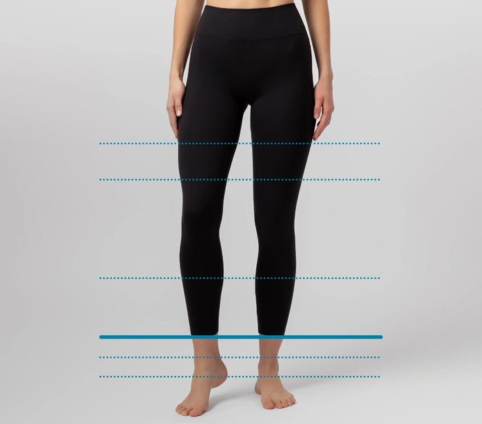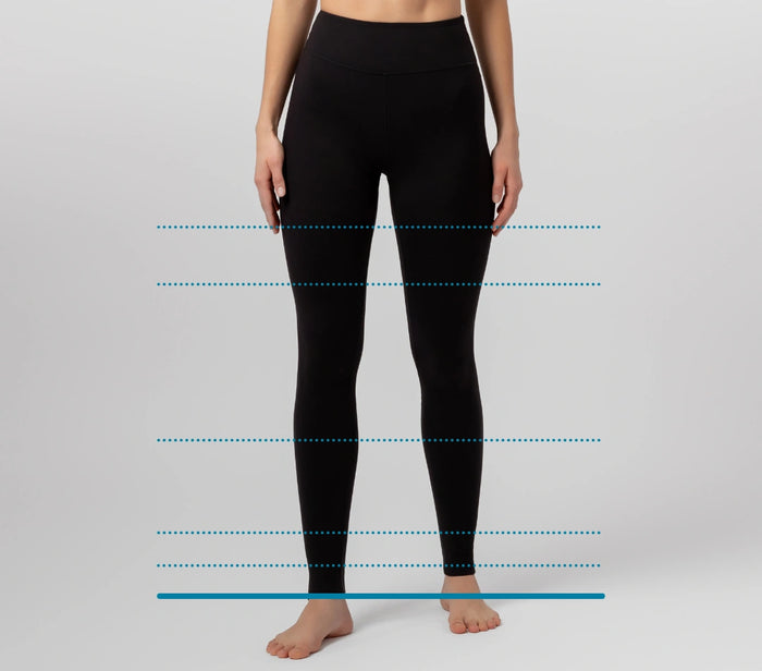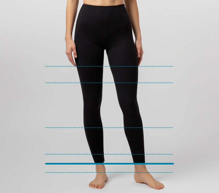 Modelka má na sebe legíny veľkosti BASIC s vnútornou dĺžkou nohavíc 72 cm.